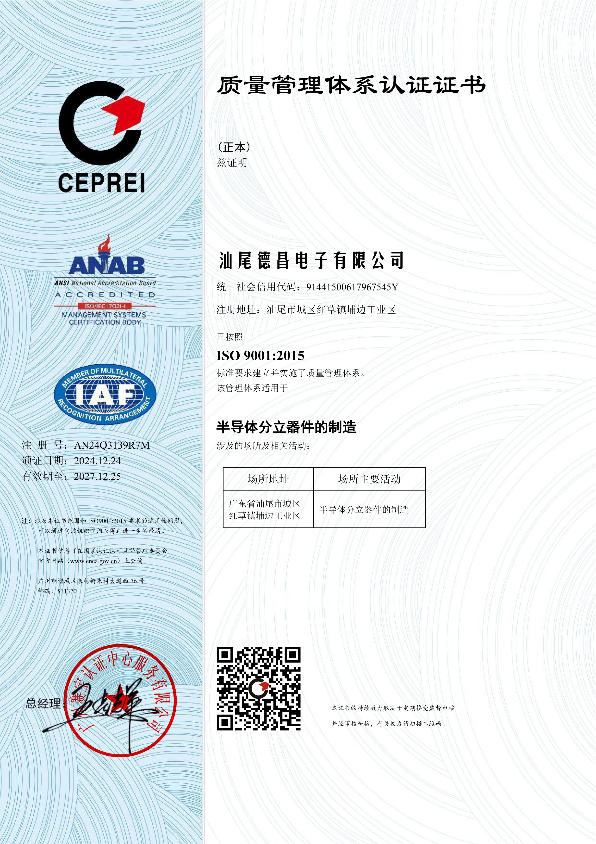 質(zhì)量證書